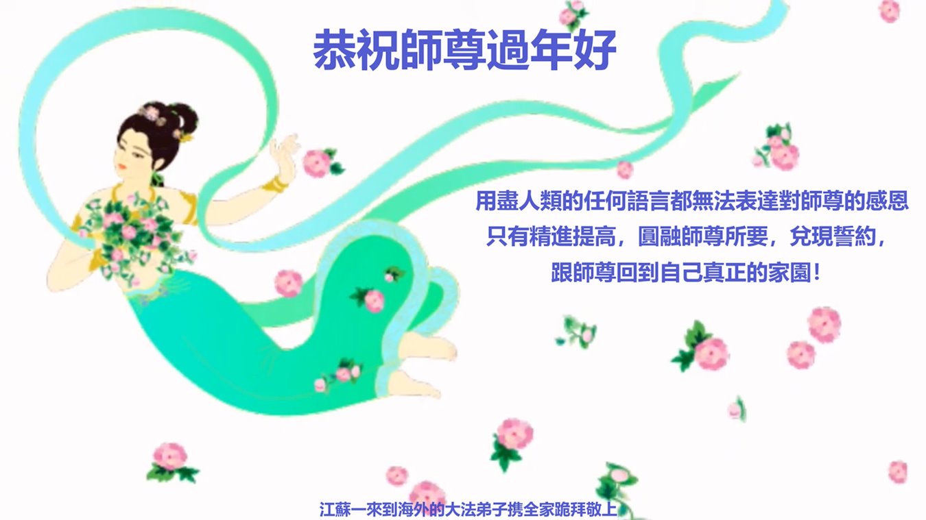 江苏一来到海外的大法弟子携全家恭祝师尊过年好!