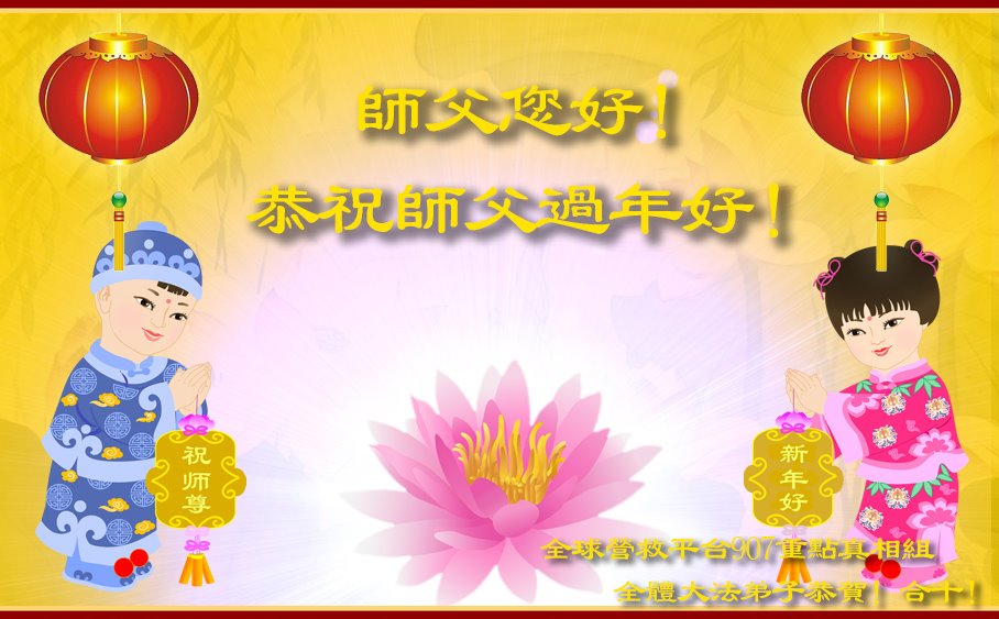 感恩师尊的慈悲救度!弟子们会按师尊的教诲学好法,做好三件事,比学比修,形成强大的整体,更多的救度众生。 全球营救平台907重点真相组全体大法弟子合十 海外网络讲真相项目组恭祝师尊过年好!