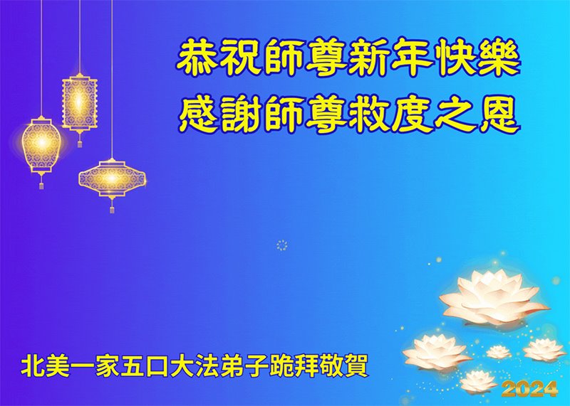 北美一家五口大法弟子跪拜敬祝师尊新年快乐!