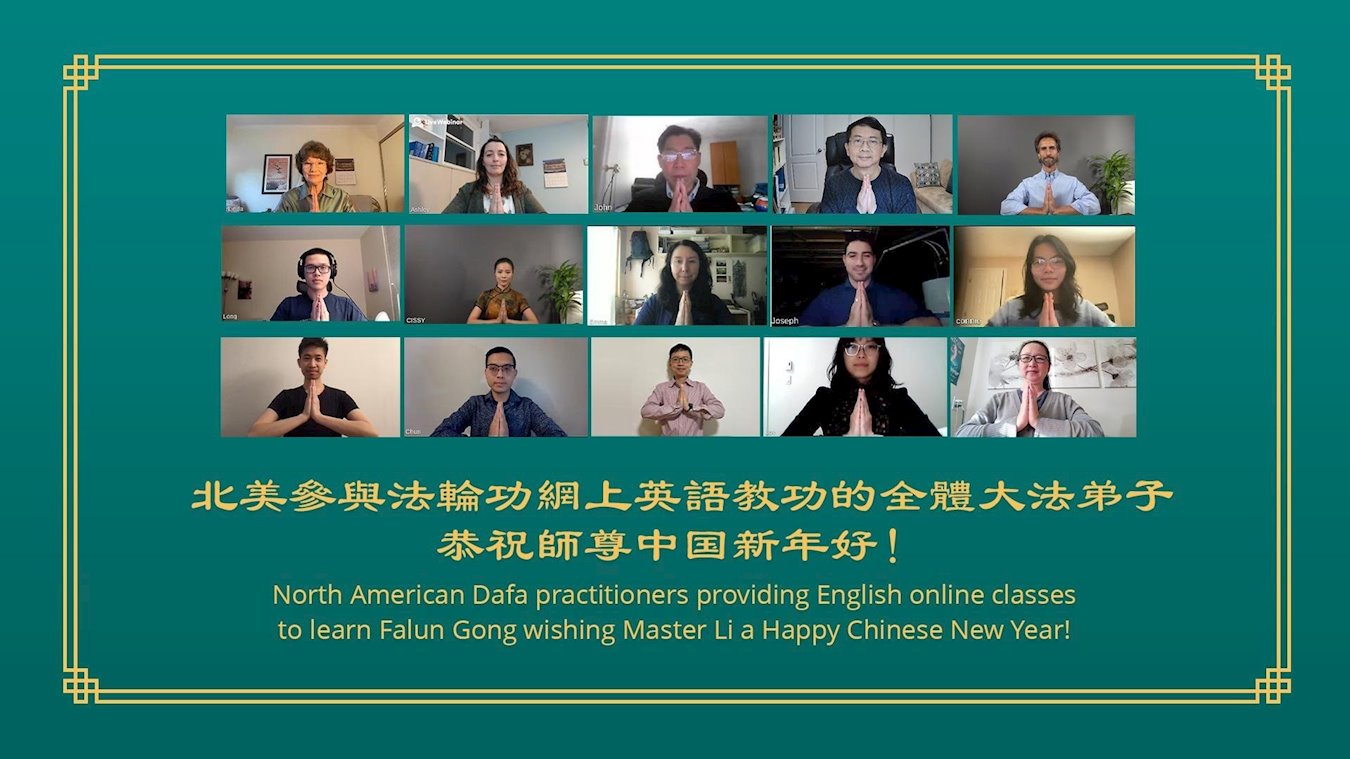 如梦令 浩荡洪恩无尽 甘露浇洒似锦 新岁忆师恩 万言化为贺信 精進、精進 正法洪势跟紧 北美参与法轮功网上英语教功的全体大法弟子恭祝师尊中国新年好!