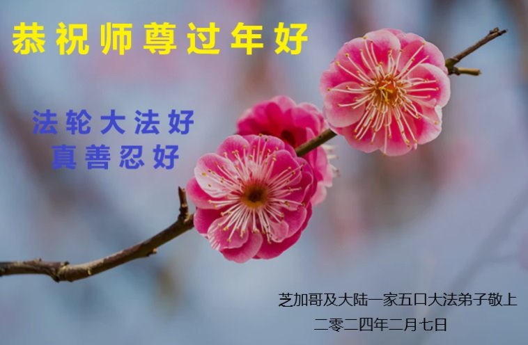 【明慧网二零二四年二月十日】甲辰年新年之际,美国北卡、芝加哥、印第安纳州、佛州、弗吉尼亚州等地以及新世纪影视大法弟子恭祝师尊过年好! 新世纪影视大法弟子恭祝师尊过年好!