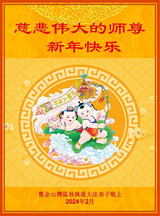 感恩师尊慈悲救度与保护!弟子新年更精進,修好自己,助师救度更多众生,完成使命。 美国旧金山湾区核桃溪大法弟子恭祝慈悲伟大的师尊新年快乐!