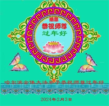 在新的一年里,弟子实实修心性,跟上正法進程,勇猛精進,做好三件事!圆满功成,回报师父的救度之恩! 哈尔滨市双城区一家大法弟子敬上 二零二四年二月九日 除夕 黑龙江省哈尔滨全体大法弟子恭祝师尊过年好!