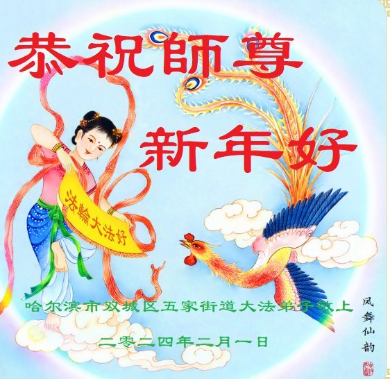 【明慧网二零二四年二月十一日】 黑龙江省哈尔滨一老年大法弟子恭祝师尊新年快乐!