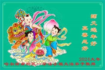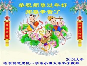 在新的一年里,弟子要谨遵师父的教诲,做好三件事,多救众生,请师尊放心。 哈尔滨市双城区一学法小组大法弟子敬上 二零二四年一月二十八日 黑龙江哈尔滨市双城区五家街道大法弟子恭祝师尊新年好!