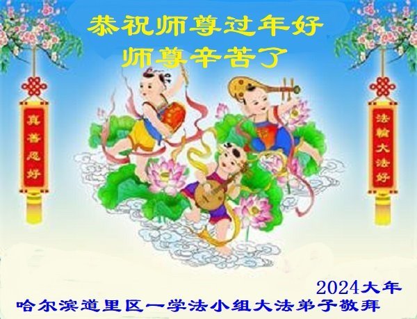 叩谢师尊救度之恩,新的一年会继续精進,做好三件事,修炼好自己。 哈尔滨市道外区大法弟子敬上 二零二四年二月九日 除夕 黑龙江省哈尔滨一大法弟子及全家恭祝师父新年好!