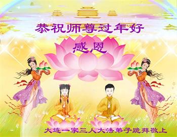 辽宁省大连一家三人大法弟子恭祝师尊过年好!感恩师尊慈悲苦度!