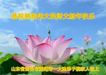 在新的一年里,弟子要更加精進,多学法,学好法,多救人,做好三件事。 山东省烟台龙口市一大法弟子敬上 山东省烟台海阳市一大法弟子及全家人恭祝慈悲伟大的师父新年快乐!