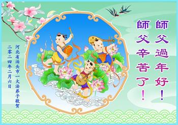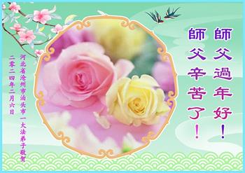 河北沧州吴桥一大法弟子给师尊拜年,恭祝师尊新年快乐!