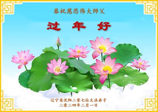 恭祝慈悲伟大的师父过年好! 辽宁省沈阳二家七位大法弟子敬上 二零二四年二月一日 辽宁沈阳六名大法弟子恭祝师父过年好!弟子叩拜师父!