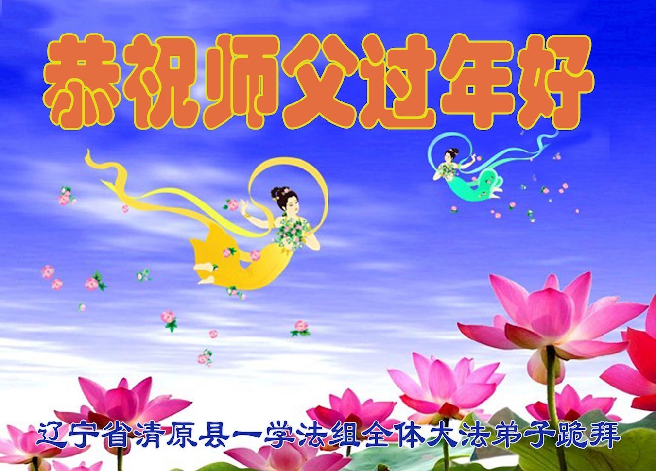 辽宁省清原满族自治县一大法弟子及明真相亲朋恭祝师父过年好!