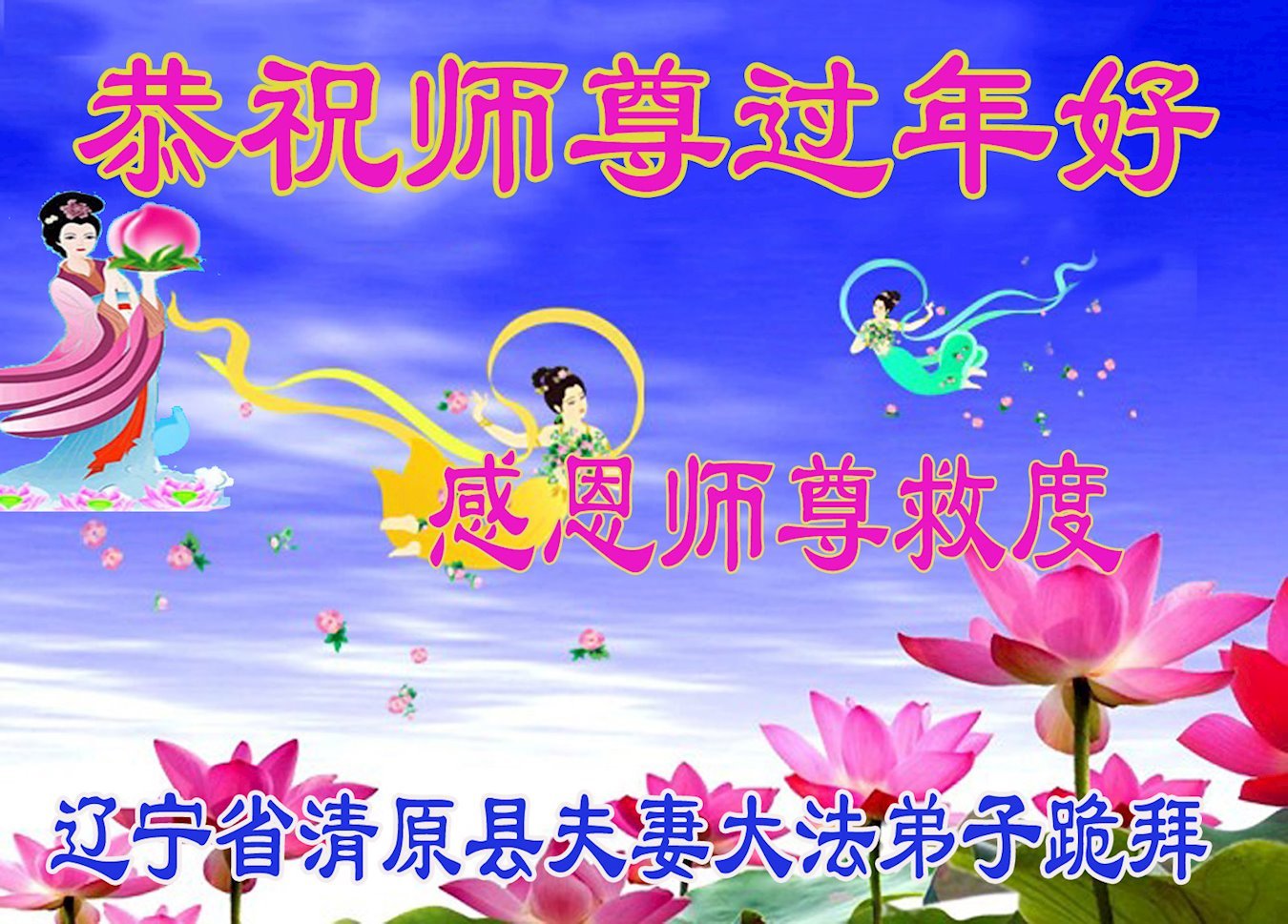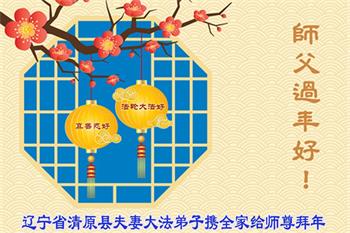 辽宁省清原满族自治县清原镇一对夫妻大法弟子及全家人恭祝师尊过年好!