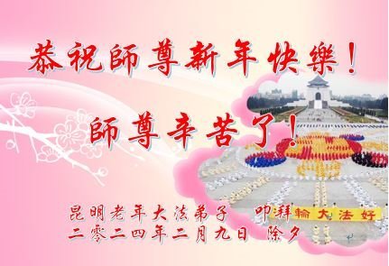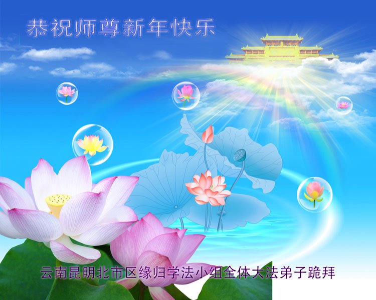 昆明市大法弟子恭祝慈悲伟大的师父新年快乐!
