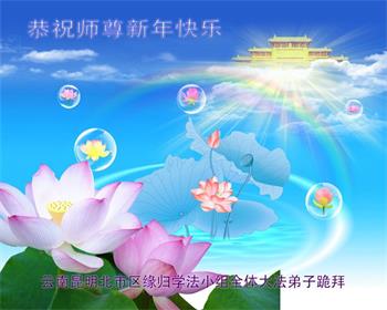 云南昆明北市区一学法小组全体大法弟子恭祝师尊新年快乐!