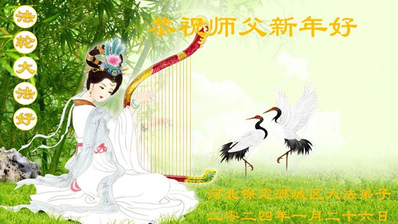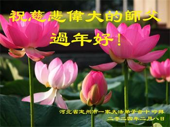 【明慧网二零二四年二月十一日】 河北省保定市定州市一家大法弟子恭祝慈悲伟大的师父过年好!