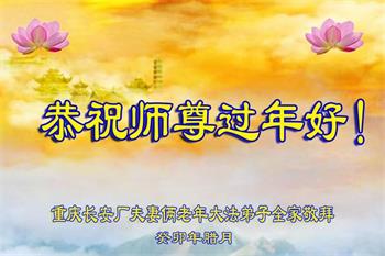 我是一名工厂工人,在新的一年里,我代表全家7口人,恭祝慈悲伟大的师尊新年快乐! 感恩师尊的慈悲救度,真的想念师尊! 中原油田全体大法弟子恭祝师父过年好!