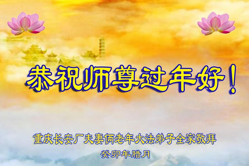 重庆长安厂夫妻俩老年大法弟子及全年恭祝师尊过年好!