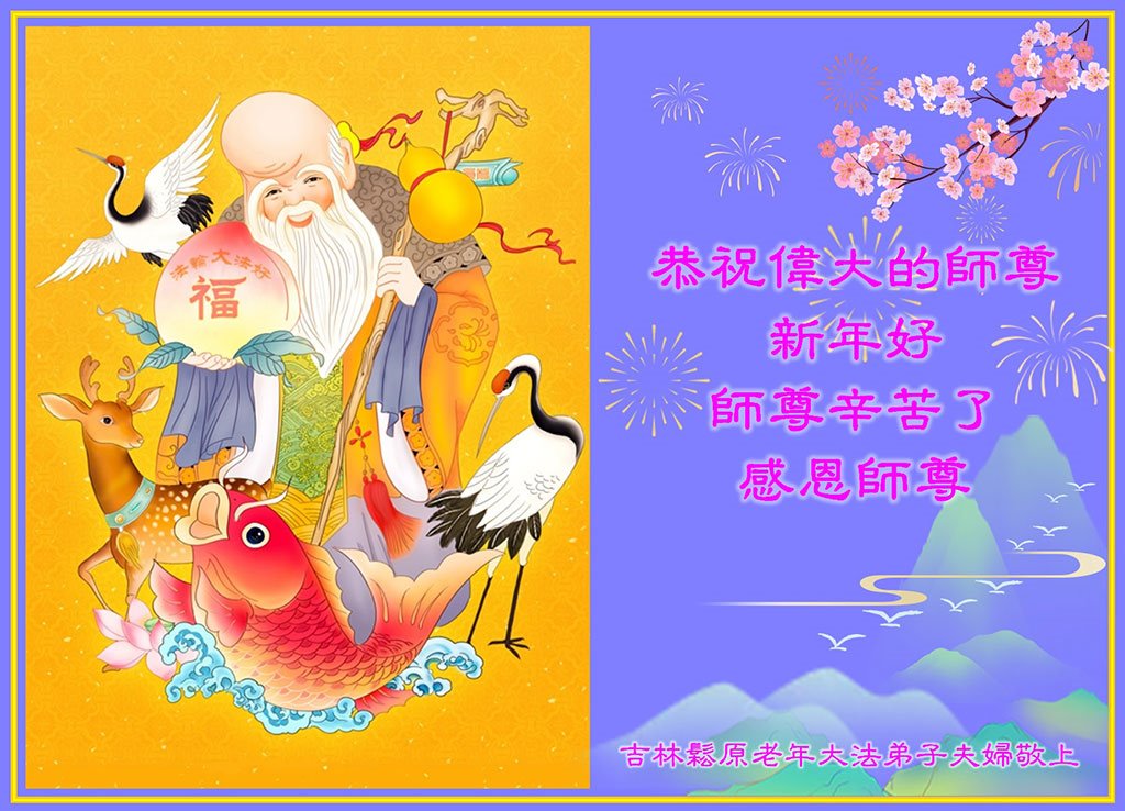 【明慧网二零二四年二月十一日】 吉林松原老年大法弟子夫妇恭祝师尊新年好!感恩师尊的慈悲救度,师尊辛苦了!