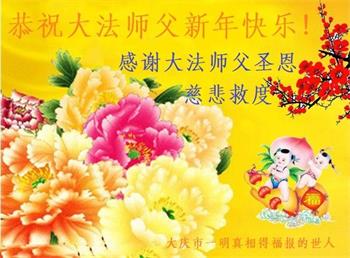 黑龙江省大庆市一明真相得福报的世人恭祝大法师父新年快乐!感谢大法师父慈悲救度!