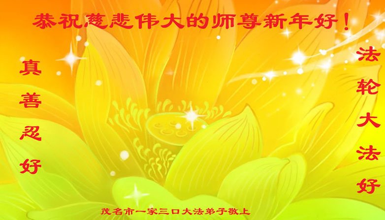 广东省茂名市电白区一家三口大法弟子恭祝师尊新年快乐!