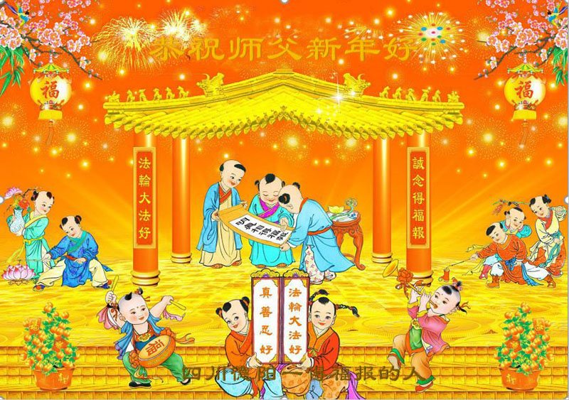 李大师新年快乐! 中国北京一家人 吉林省一明真相的残疾人恭祝法轮大法师父过年好!