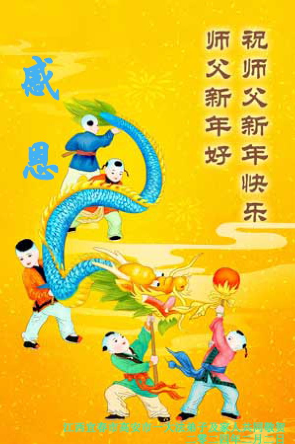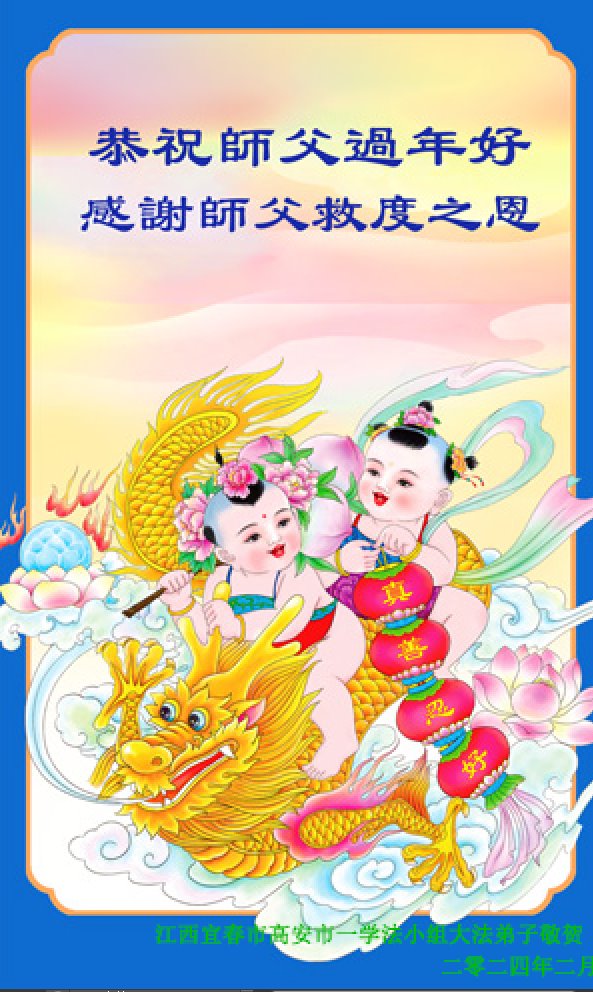 【明慧网二零二四年二月十一日】 江西南昌市城南一学法小组大法弟子母女俩祝师尊新年快乐!