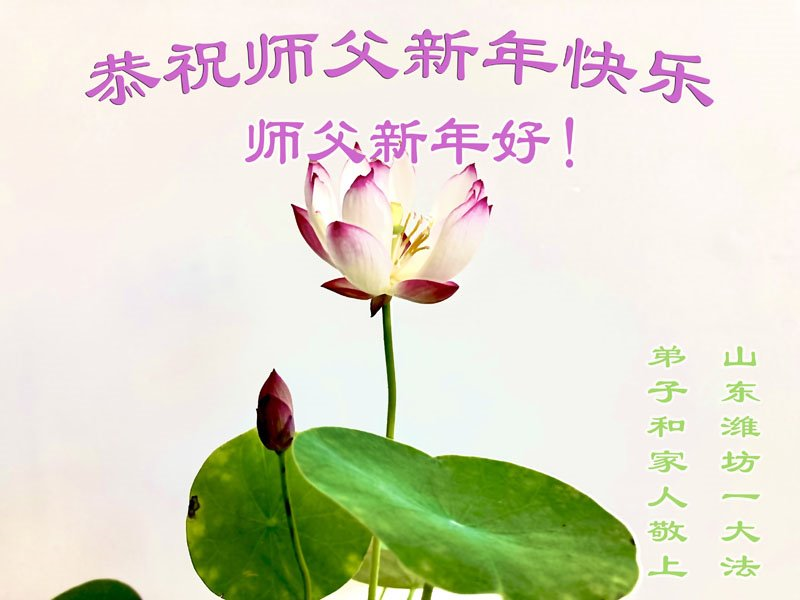 走过了很多的艰难岁月,磕磕绊绊左一跤右一跤,只因自我、私心、执着心太重,没有百分之百的信师信法,师父没有放弃我这个不争气的弟子,谢谢师父对我的慈悲苦度,今后我一定会多学法,每一思每一念用法衡量,做好三件事,让师父少操心,再祝师父新年快乐! 山东潍坊奎文区一学法点大法弟子祝愿师父新年快乐!
