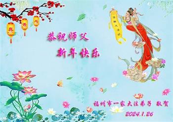 恭祝慈悲伟大的师尊新年快乐!感谢师尊的慈悲救度之恩! 福建省莆田市一大法弟子 二零二四年一月二十四日 福建省福州市一家大法弟子恭祝师父新年快乐!