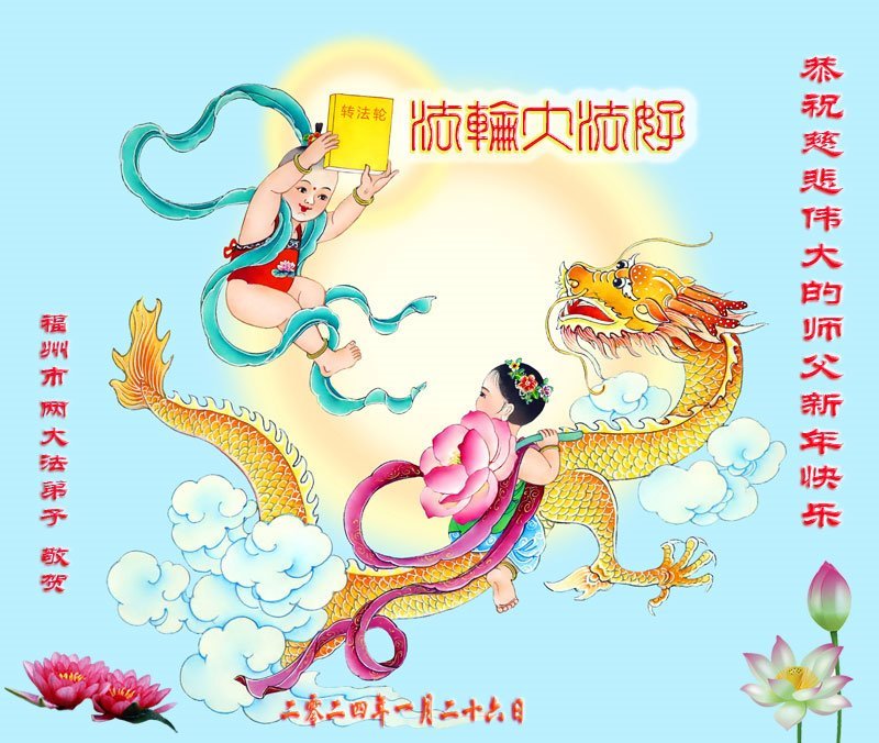 福建省福州市两大法弟子恭祝慈悲伟大的师父新年快乐! 福建福州市一学法小组大法弟子恭祝师尊过年好!