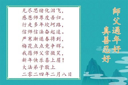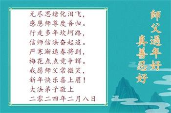 【明慧网二零二四年二月十一日】 辽宁锦州黑山大法弟子恭祝慈悲伟大的师尊过年好!