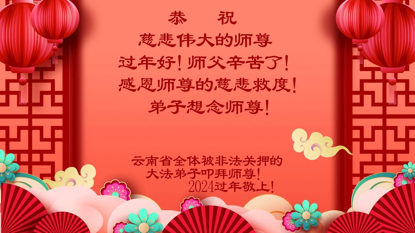 在新的一年里,我们会更加精進,听师父话,修好自己,救度众生。兑现誓约,不负众望,圆满随师返家园。 吉林省长春市三名弟子(包括一名非法关押的弟子)敬上 二零二四年二月九日 除夕 云南省全体被非法关押的大法弟子恭祝慈悲伟大的师尊过年好!