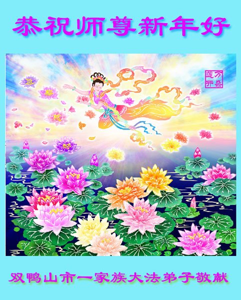 黑龙江双鸭山市一家族大法弟子恭祝师尊新年快乐!
