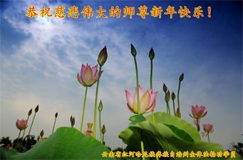 云南省昆明市大法弟子恭祝慈悲伟大的师尊新年快乐! 恭祝慈悲伟大的师尊新年好! 师父辛苦了!弟子感恩师尊的救度之恩! 云南省昆明市北郊一大法弟子及家人恭祝慈悲伟大的师尊新年快乐!