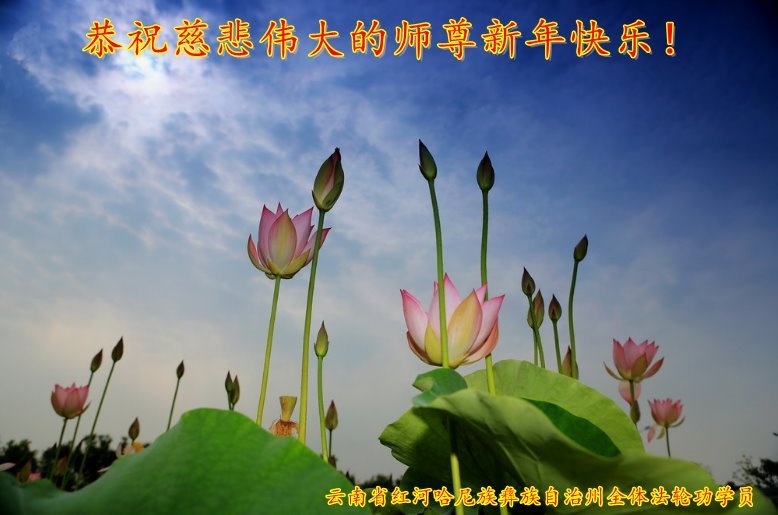 云南红河哈尼族黎族自治州全体大法弟子恭祝慈悲伟大的师尊新年好!
