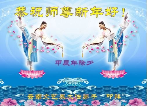胜利油田母子大法弟子恭祝慈悲伟大的师父新年快乐!师父过年好! 胜利油田母子大法弟子叩拜 二零二四年二月九日除夕 云南文艺界大法弟子恭祝师父新年快乐!