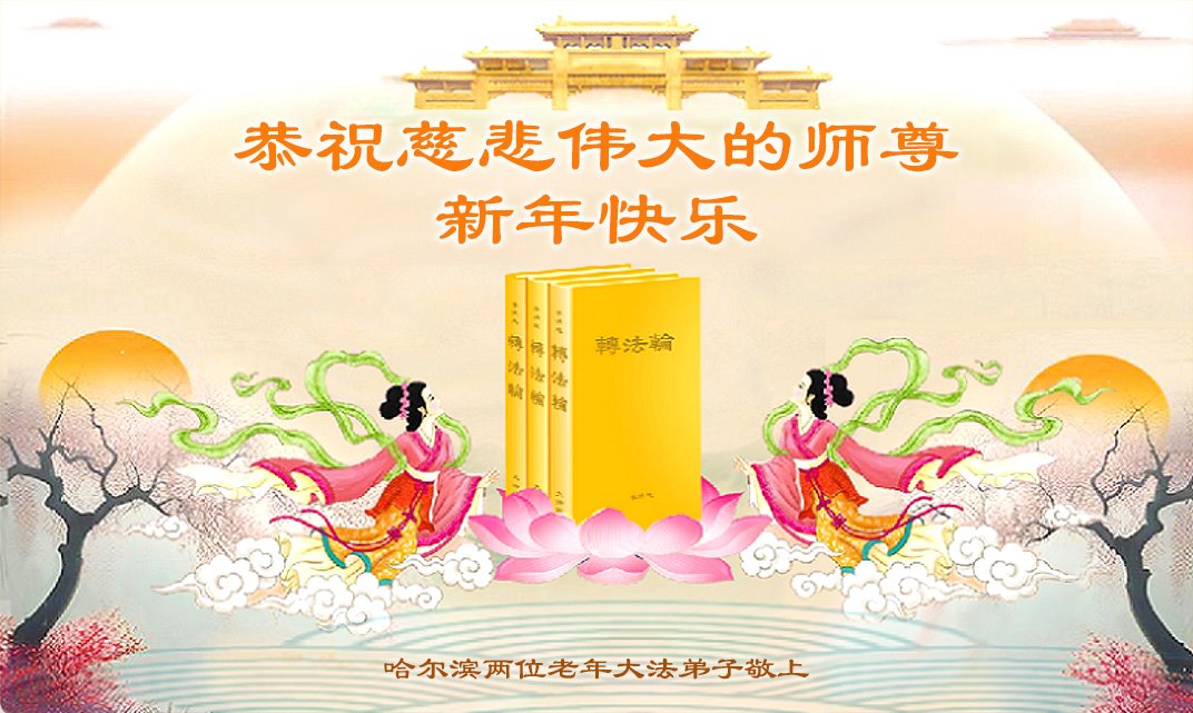 叩拜恩师新年快乐!师父您辛苦了!弟子不辜负师父的慈悲苦度,要做到真修、实修,师父指引的修炼路,兑现誓约,跟师父回家。 黑龙江省哈尔滨两位老年大法弟子恭祝师父新年好!