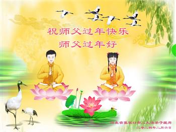 师尊过年好! 新的一年我们会消除间隔,圆容整体,学好法,发好正念,共同提高! 河北省张家口市涿鹿县12名大法弟子的家人恭祝师尊过年好!