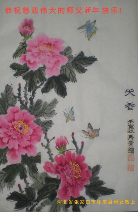 在新年到来之际,我们母女同修一定要共同精進,好好实修自己,做好三件事,跟师父回真正的家园。 河北省张家口赤城县正宁堡乡学法小组大法弟子恭祝师父过年好!