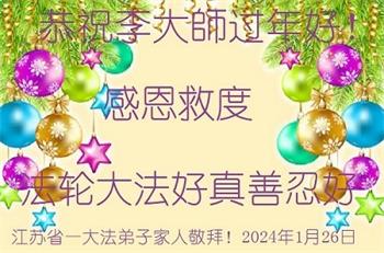 江苏省一大法弟子家人敬上 二零二四年一月二十六日 江苏常州地区一大法弟子恭祝恩师新年好!恭祝恩师新年快乐!