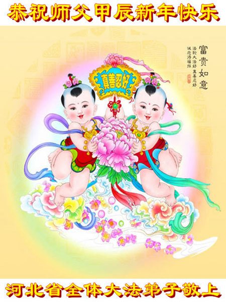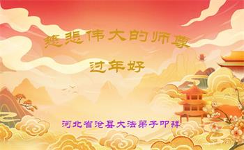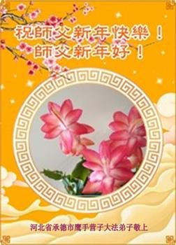 谢谢师尊的慈悲救度!感恩师尊!在新的一年里,我要加倍努力,学好法,多救人,跟上正法進程,完成使命,随师父回家。 河北省全体大法弟子恭祝师父新年快乐!