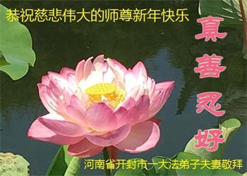 河南省开封市一大法弟子夫妻恭祝慈悲伟大的师尊新年快乐!