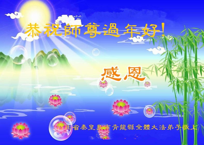 感恩师尊的慈悲救度!我们一定要修好自己,做好三件事,兑现史前大愿,跟随师尊回家! 河北省秦皇岛市青龙县全体大法弟子恭祝师尊过年好!