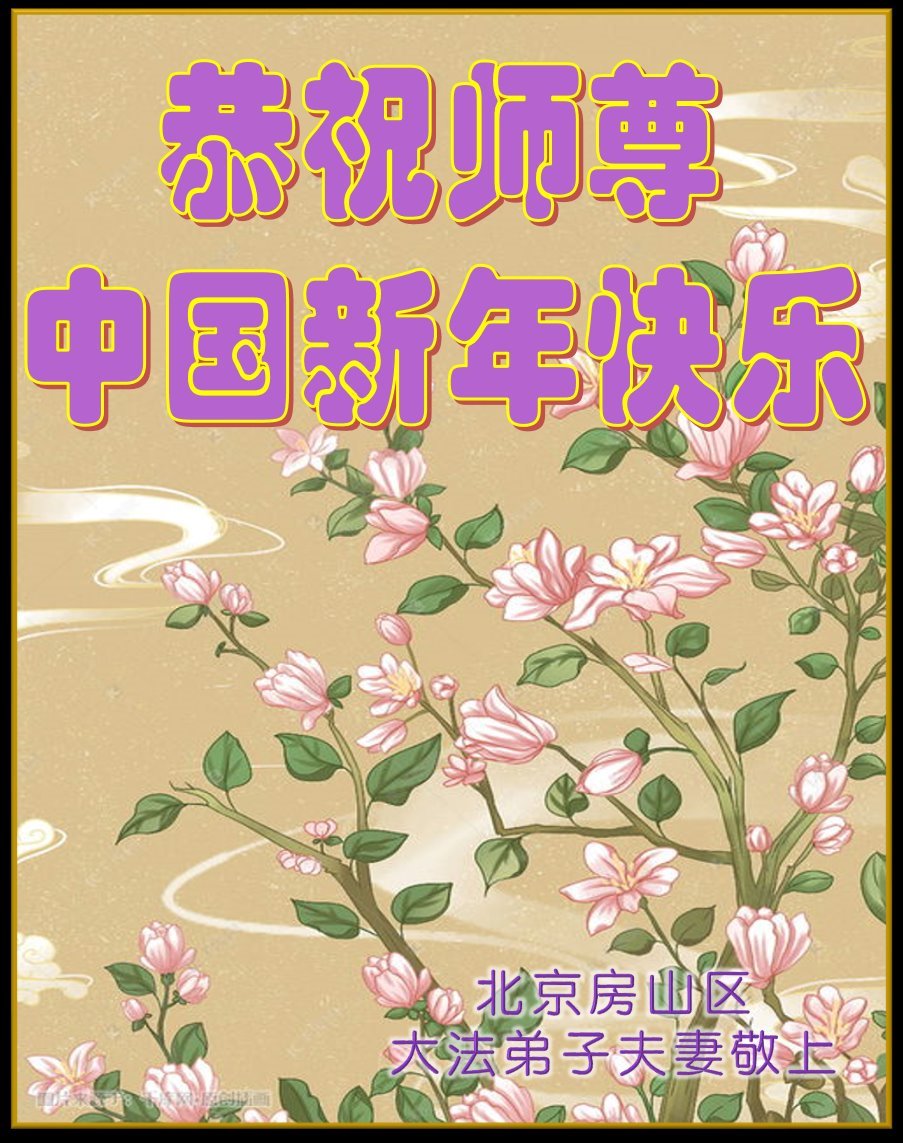 北京昌平一对老年大法弟子向师尊问好!师父您好! 在新年到来之际,我们全家祝您新年快乐!在新的一年里我们要多学法,精進实修。 昌平一对老年大法弟子拜上 二零二三年腊月二十二 北京房山区一夫妻大法弟子恭祝师尊中国新年快乐!