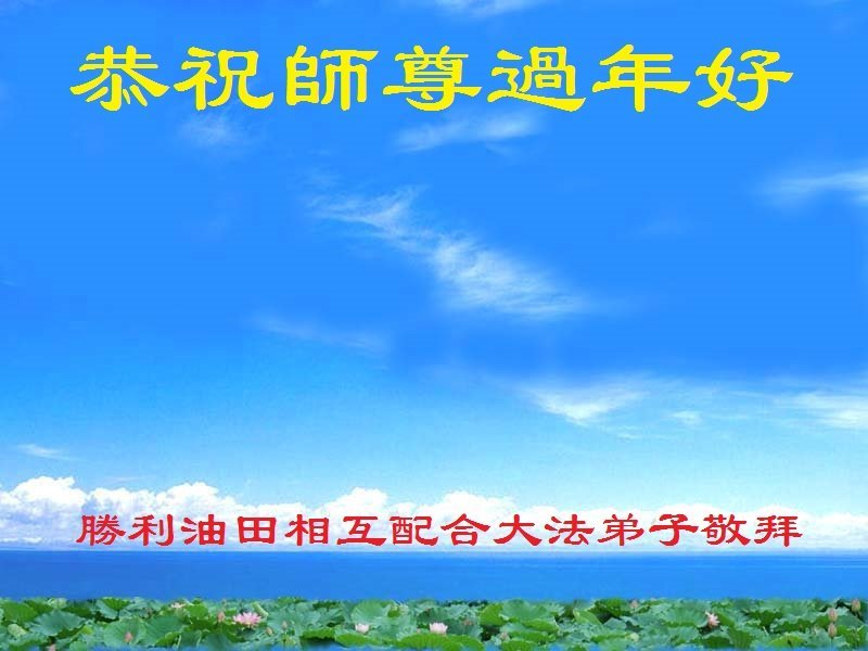 师尊您好!在新的一年里,弟子们恭祝伟大慈悲的师父新年快乐!愿师尊多一份欣慰,少一份操劳。 跪拜浩荡师恩 山东胜利油田一学法小组全体大法弟子恭祝师父过年好!