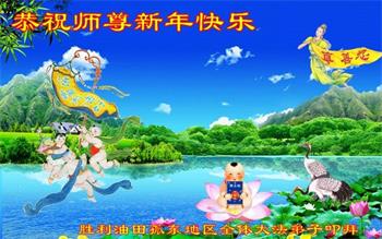 胜利油田孤东地区全体大法弟子恭祝师尊新年快乐!