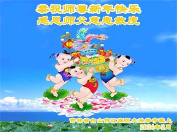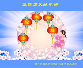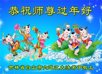 师尊过年好!师尊辛苦了!感恩师尊! 林省抚松县松江河镇四名大法弟子敬上 吉林省白山市大法弟子恭祝师尊过年好!
