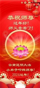 师父好!在新的一年里,弟子要多些时间学法。 广东省东莞市大法小弟子敬上 二零二四年二月九日 除夕 山东省淄博市大法小弟子恭祝师父新年快乐!
