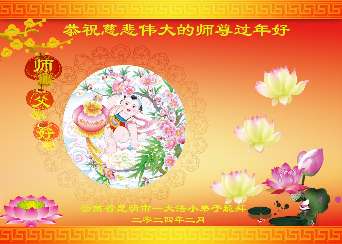 感谢师尊慈悲救度 叩拜恩师! 云南省昆明市一大法小弟子恭祝师尊过年好!