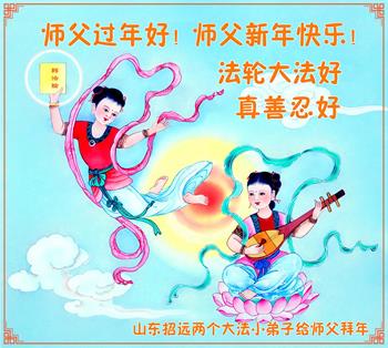 潍坊大法小弟子,还有妈妈同修和弟弟小同修共同恭祝师尊新年快乐!跪谢师尊慈悲救度! 潍坊大法弟子敬上 辽宁沈阳市一名九岁大法小弟子代表全家四代大法弟子恭祝师尊新年快乐!
