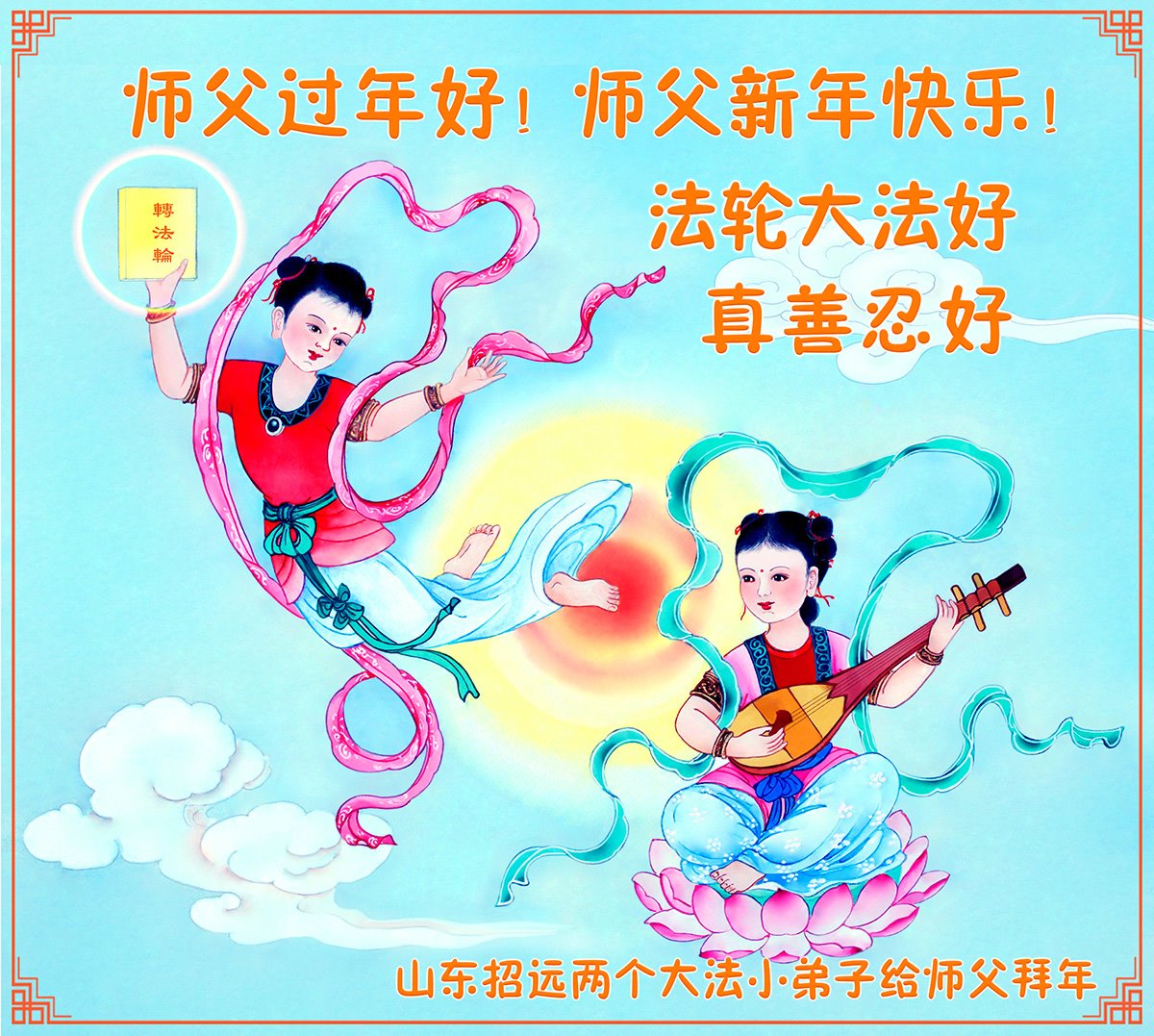 山东省烟台市招远市两个大法小弟子恭祝师父过年好!